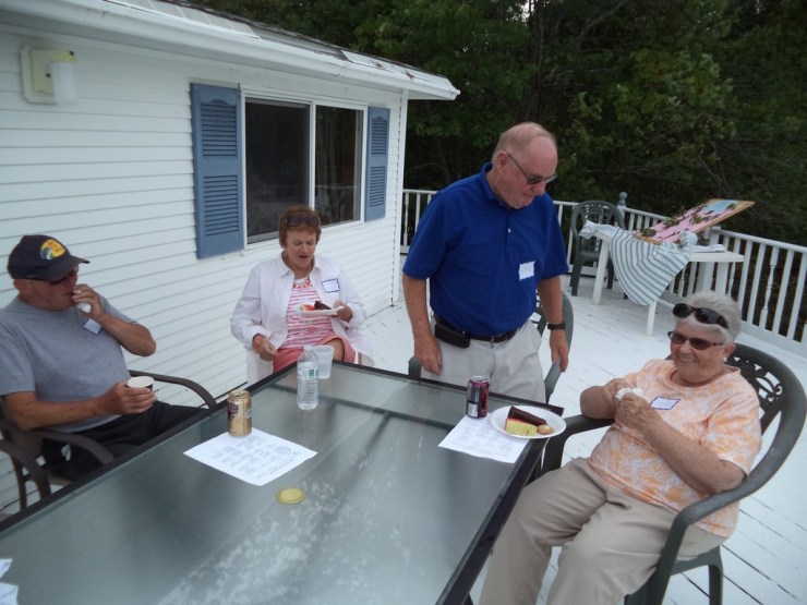 On July 25, 2015, almost 30 SDRA members and their guests spent the afternoon together at the Blueberry Pointe home of Steve Hanley and Carolyn Fortuna. We had the gift of Goldilocks weather – not too hot, not too cold, just right – while we enjoyed good conversation and scrumptious food on the deck.