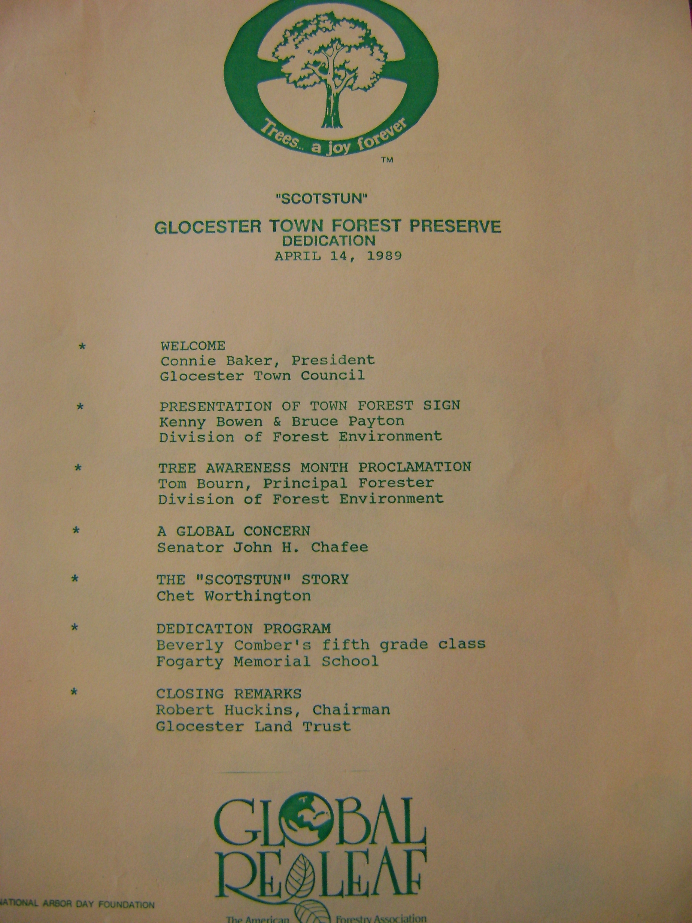 seal for membership certificate bondsInvitatin and notice about the dedication of the Glocester Town Forest Preserve: Scotsun, April 14, 1989.Providence Journal newspaper article with photographs of Chet Worthington’s cottage. The smoking remains were all that was left after two local teenagers burned it down.Copy of narrative for the 2001 water testing grant: Senate Fiscal Office, Senate Legislative Grants Review