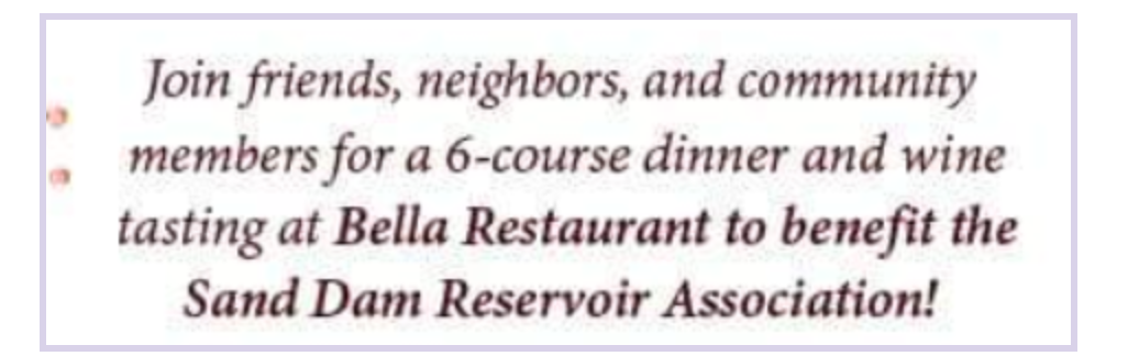 The next event for all to get involved in is a great “FUN” night, a time to enjoy being with friends and neighbors. On May 18, 2019, from Saturday, 5:30 — 8:30 p.m.+ Bella’s Restaurant will be the setting for SDRA’s 6-course dinner with accompanying fine wine tastings led by Kevin Kitson. The entertainment will be the “Black Tie Affair” — the evening event is not to be missed. You can also help by donating items to the Silent Auction. A Poster is attached below..